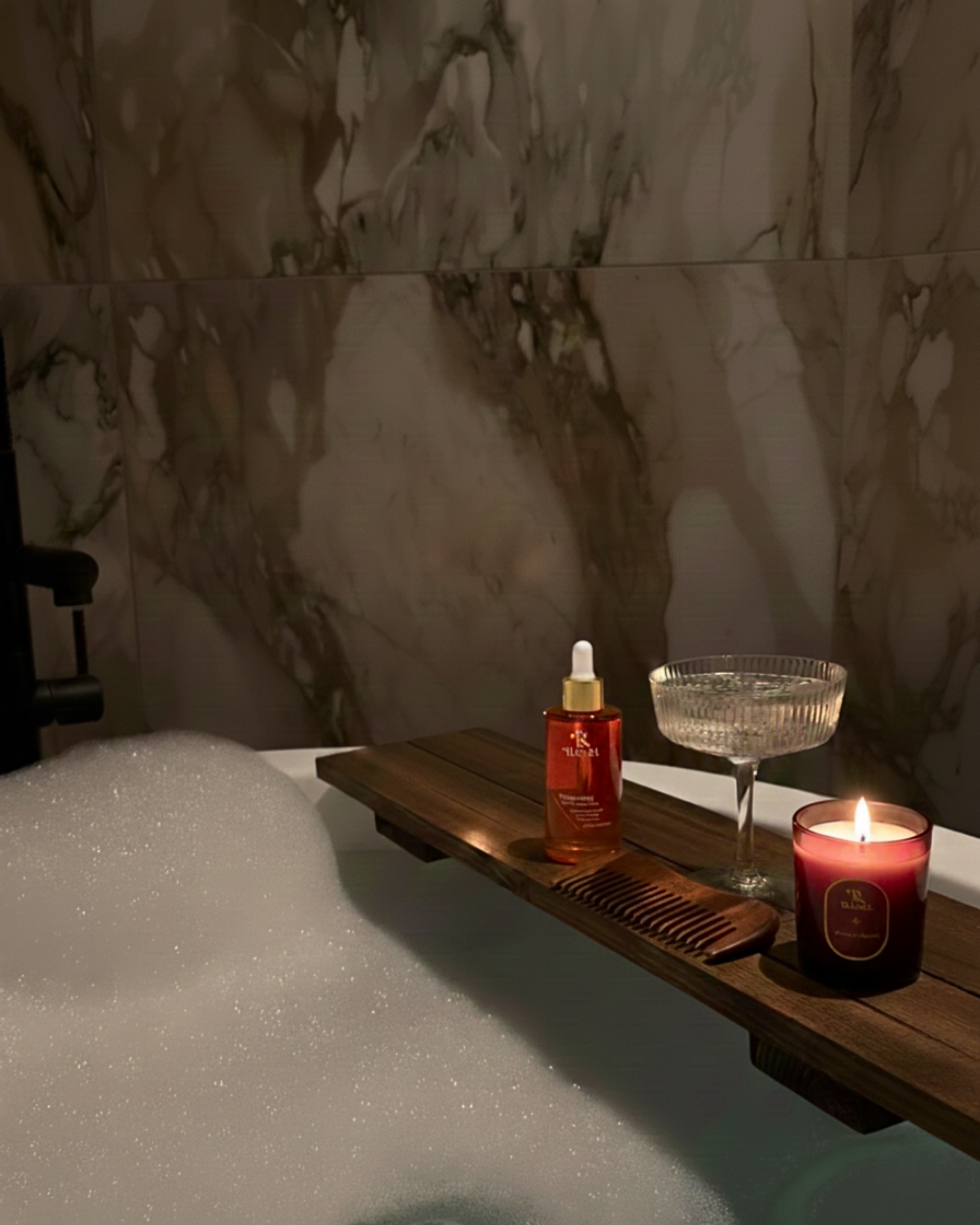 Sandalwood Comb – Gentle on your scalp and hair, designed for optimal oil distribution during your massage ritual.